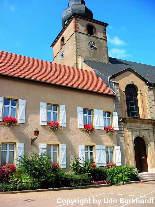 Leiding ist ein Ortsteil der französischen Gemeinde Heining-lès-Bouzonville. Mitten durch den Ort geht auf einer Straße die deutsch französische Grenze.